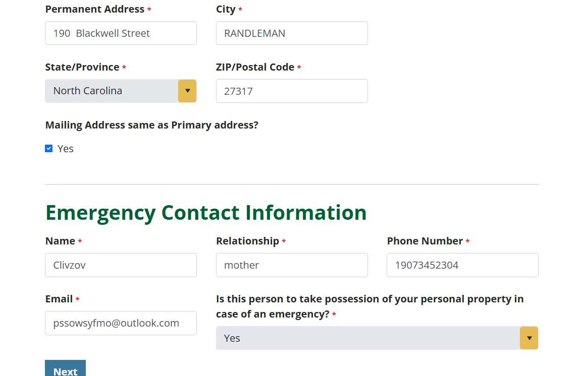 随便填几个信息就可以了。不像asu这类,一堆信息。而且可以直接登录邮箱,托管微软。
